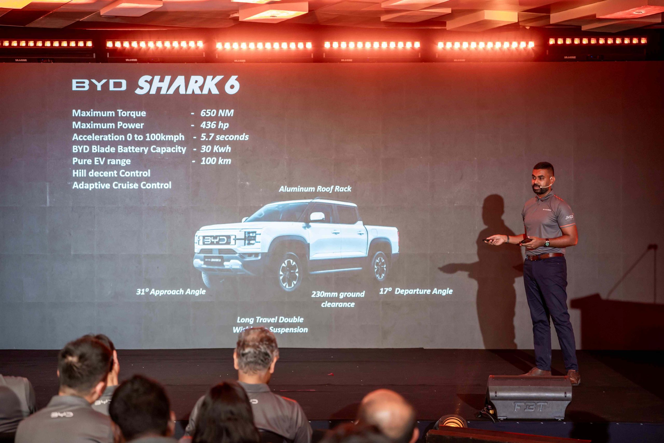 BYD සහ එහි මෙරට බලයලත් බෙදාහරින ආයතනය වන John Keells CG Auto එක්ව පසුගියදා ශ්රී ලංකාවේදී SHARK 6 රථය නිල වශයෙන් දියත් කළේය. එය දේශීය වෙළඳපොළට හඳුන්වා දුන් පළමු plug-in hybrid තාක්ෂණය සහිත pickup ට්රක් රථයයි. කොළඹ පැවති විශේෂ උත්සවයකදී එළිදැක්වුණු BYD SHARK 6 නවීන hybrid තාක්ෂණය සමඟින් රළු, වැලි සහ මඩ මතුපිටක් සහිත මාර්ගවල වුවද පහසුවෙන් ධාවන කළ හැකි වීම සහ උසස් මට්ටමේ SUV රථයක විශේෂාංගවලින් සමන්විත වීම විශේෂත්වයකි-